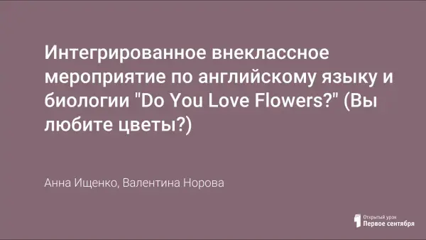 Интегрированное внеклассное мероприятие по английскому языку и биологии "Do You Love Flowers?" (Вы любите цветы?)