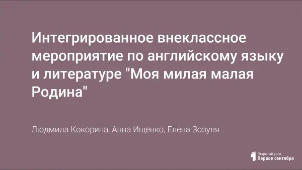 В нашем крае ведется большая работа по реализации регионально-национального компонента. Интегрированное внеклассное мероприятие «My Native Land» («Моя милая малая Родина») представляет собой одну из форм работы по регионоведению. Оно разработано как мультимедийная презентация для английских друзей, которым интересно познакомиться с жизнью кубанцев, их традициями, культурой, узнать историю нашей малой родины, увидеть красоту окружающей природы.