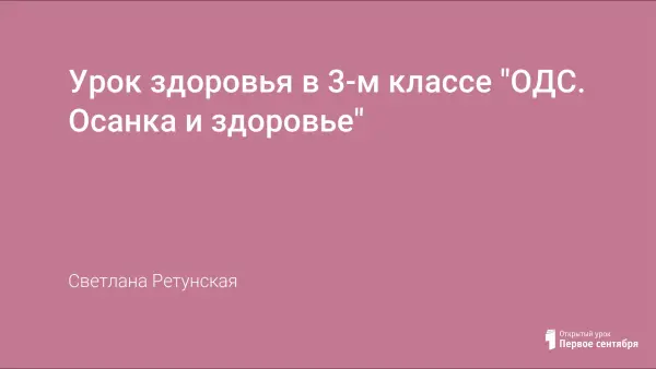 Урок здоровья в третьем классе по теме «ОДС. Осанка и здоровье» составлен на основе программы «Здоровье». На этом уроке раскрывается забота о здоровье подрастающего поколения. Здоровый образ жизни, направленный на предупреждение возникновения какого-либо заболевания, обеспечивает полноценное развитие и реализацию возможностей индивида.