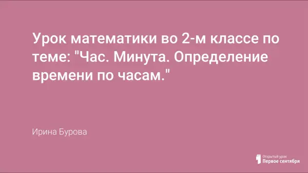 Представленный урок математики во 2-м классе формирует у детей представление о единицах времени: часах, минутах. Дети на уроке учатся определять время по часам, совершенствуют вычислительные навыки, умение решать задачи. На данном уроке представлено многообразие видов работы как индивидуальной, так и в парах, присутствуют игровые виды деятельности. Урок сопровождает презентация.