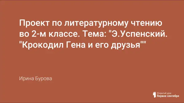 Урок-проект по литературному чтению во 2-м классе представляет собой презентацию и оценку результатов и процесса проектной деятельности. Ознакомившись полностью с литературным произведением, ребята разбиваются на группы, собирают и обрабатывают материал, готовят кроссворды, викторины, сценку, оформление. По результатам собранного детьми материала составлен конспект и проведен данный урок.