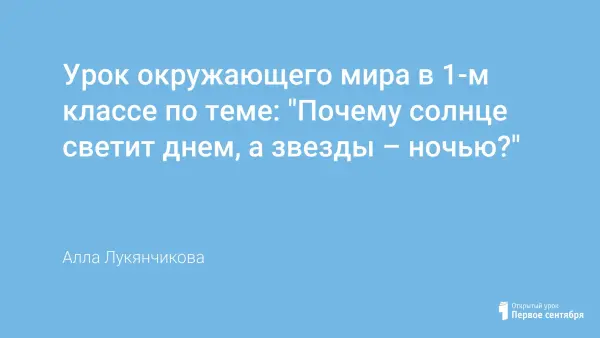 Тема «Почему солнце светит днем, а звезды - ночью?» является одной из тем в курсе окружающего мира. Главные задачи урока - дать детям представление о формах звёзд, обеспечить условия для формирования представлений о солнце как источнике света, развивать интеллектуальные и практические умения детей. Успешность выполнения этих задач зависит от научных сведений, проведенных опытов и игр.