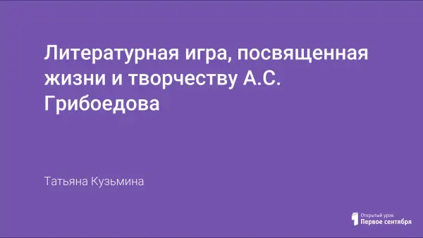 Литературная игра, посвященная жизни и творчеству А.С. Грибоедова, знакомит учащихся с незаурядным человеком, талантливым писателем и выдающимся дипломатом.