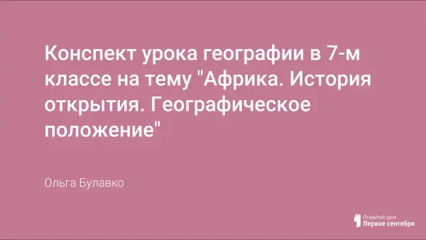 Задачи урока: научить давать характеристику ФГП Африки, используя алгоритм; продолжить формировать умения работать с картами атласа (определять географическое положение, определять географические координаты); назвать имена исследователей материка и результаты их работ; подчеркнуть вклад русских ученых и путешественников в исследовании природы Африки.