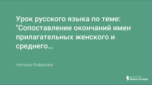 Цель: совершенствование умений в правописании окончаний прилагательных женского и среднего рода в именительном падеже через их сопоставление.