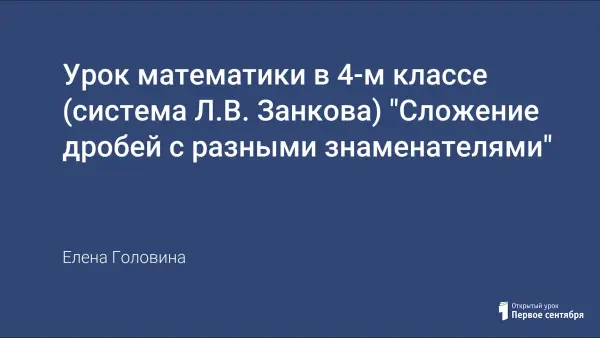 Урок математики в 4-м классе учит складывать дроби с разными знаменателями; обобщает и систематизировать знания о дробях; совершенствует вычислительные навыки, навыки самостоятельной работы; развивает память, внимание, логическое мышление, умение делать обобщающие выводы.
