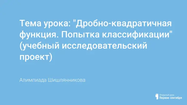 Классификация графиков ДКФ во многом облегчила бы работу учителей и учащихся, занимающихся исследованием функций. Интересно и полезно создать такую классификацию, объединив функции в группы по принципу общности свойств. В работе классификация ДКФ представлена в форме таблиц. Такую работу можно предложить учащимся в виде коллективного исследовательского проекта с целью обобщения свойств ДКФ и проведения классификации их графиков с последующей презентацией. Работа над таким проектом имеет много преимуществ по сравнению с традиционными формами обучения.
