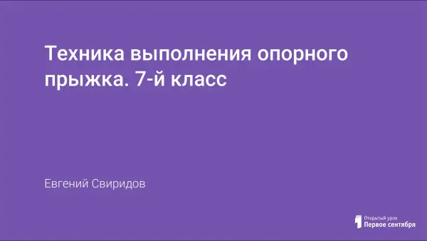 Цель урока: уметь выполнять основные виды движений при выполнении опорного прыжка; знать технику выполнения опорного прыжка «ноги врозь»; знать правила поведения и безопасности во время занятий физическими упражнениями.