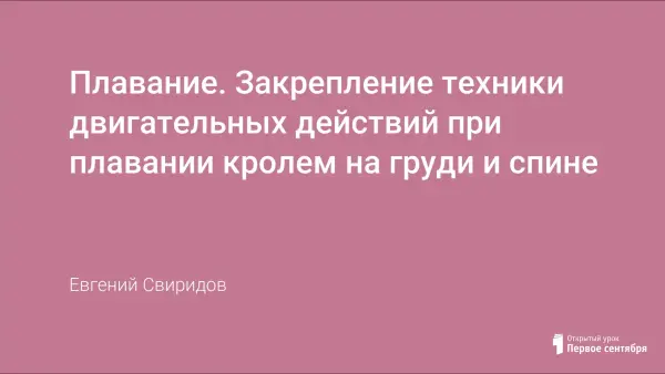 Цель урока: знать правила поведения и безопасности во время занятий физическими упражнениями в бассейне; знать технику плавания кролем на груди и спине; применять знание техники плавания кролем на груди и спине; уметь использовать приобретенный плавательный навык для преодоления дистанции с изменением скорости движения кролем на груди и спине.
