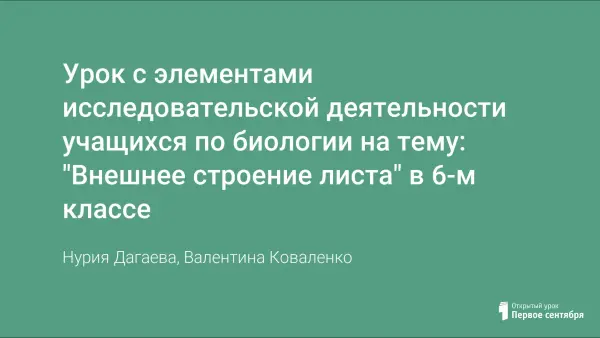 Урок с элементами исследовательской деятельности учащихся по биологии на тему: "Внешнее строение листа" в 6-м классе