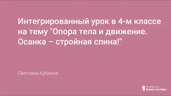 Представлен конспект интегрированного урока по природоведению, физической культуре и ОБЖ. Цель - профилактика нарушения осанки, т.к. в последнее время большое внимание уделяется применению здоровьесберегающих технологий на уроках и во внеклассной работе.