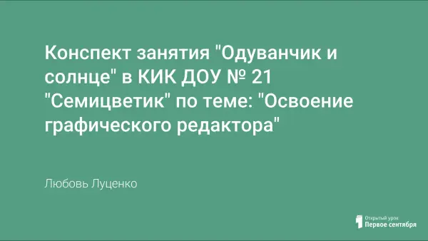 Для воспитателей КИК (компьютерно-игровых комплексов) в детских садах предлагается конспект занятия для формирования у детей навыков работы с графическими редакторами. Показано занятие, в котором используется межпредметная связь с природоведением, развитием речи и изобразительным искусством.