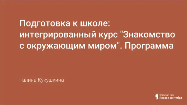 Программа данного курса не только расширяет знания дошкольников об окружающем мире, но и направлена на то, чтобы помочь им познакомиться с правилами школьной жизни, научиться быть учениками, учит их ориентироваться в пространстве и в новом для них социуме. Курс предусматривает ознакомление будущих первоклассников с природой во взаимодействии: человек - природа - общество, знакомство с миром нового социального окружения будущего первоклассника и включает в себя природоведение, психологию, математику, обучение грамоте, родиноведение.