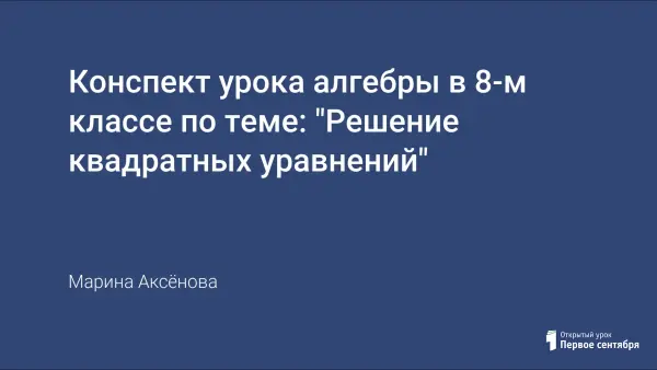 Урок по теме "Решение квадратных уравнений" разработан с целью систематизации и обобщения знаний учащихся о способах решений полных и неполных квадратных уравнений.