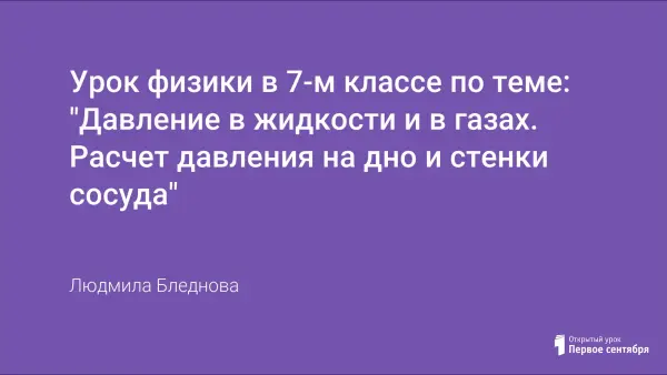 чувства ответственности, практических умений – умения работать с приборами, наблюдать, делать выводы в процессе усвоения знаний по теме "Давление в жидкости и в газах. Расчёт давления на стенки сосуда"; развивает познавательный интерес у учащихся.