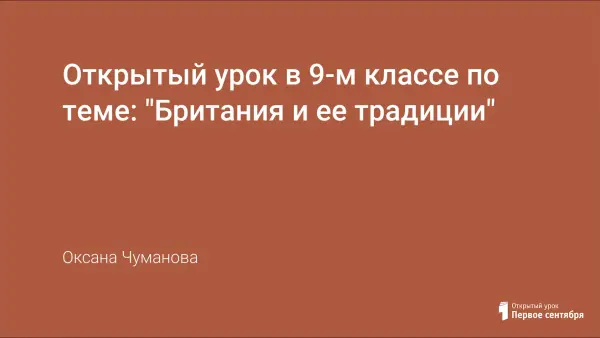 Одна из глав учебника для 9-го класса посвящена Великобритании, её особенностям, достижениям, известным людям Британии и называется “Britain in the world”. После окончания изучения данной темы проводится обобщающий урок. Данный урок активизирует употребление изученного языкового материала, формирует интересы учащихся, расширяет кругозор, развивает мотивацию к дальнейшему овладению иноязычной культурой, а также систематизирует страноведческий материал.