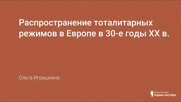 Разработка открытого урока по всемирной истории в 11-м классе выявляет закономерности между распространением тоталитарной идеологии и внутриполитическим состоянием общества, формирует умение анализировать, выделять общие и типичные особенности фашистских режимов в разных странах.