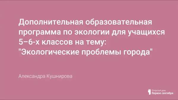 Дополнительная образовательная программа по экологии для учащихся 5–6-х классов на тему: "Экологические проблемы города"