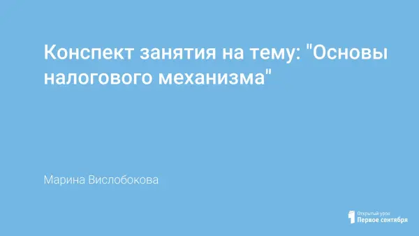 Конспект может быть использован для объяснения материала по основам налогового механизма в старших классах общеобразовательной школы, учреждениях системы начального профессионального и среднего профессионального (для студентов неэкономических специальностей). В ходе занятия не только объясняются ключевые понятия темы, но и проводится расчёт сумм налогов в различных налоговых системах, для закрепления материала приведено задание на соотнесение термина и определения, для вводной беседы предложены вопросы и предполагаемые ответы учащихся. Сопровождение объяснения слайдами мультимедийной презентации позволит сократить время для записи определений понятий учащимися, а преподавателю оставит время для выдачи заданий, индивидуальных пояснений.