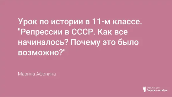 Среди многих героических страниц истории нашей страны были и тёмные периоды. К таким периодам относится время репрессий. Урок рассказывает о Соловецком монастыре, месте, где много веков подряд, жили и молились монахи. А в 1918 году там был устроен первый лагерь в Советской России. И там начали уничтожать людей, живущих в СССР. Ученики должны задуматься: что следует сделать, чтобы эти события не повторились.