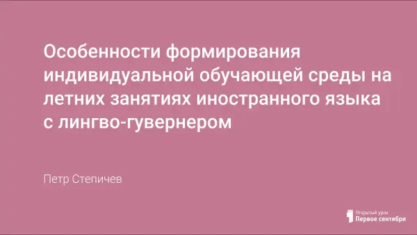 Формирование индивидуальной обучающей среды на летних занятиях иностранного языка с лингво-гувернером требует особых методических подходов в работе с лексикой и грамматикой, а также иной концепции оценивания учебных результатов. Методики "лексического мешка" и "лексической цепочки", а также особое оформление дачного участка, где организуется курс, позволят существенно расширить словарный запас ученика, а оценочная система в форме интеллектуальных денег - мудриков - стимулирует его на изучение иностранного языка.