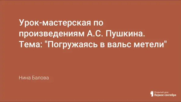 Урок-мастерская по произведениям А.С. Пушкина. Тема: "Погружаясь в вальс метели"