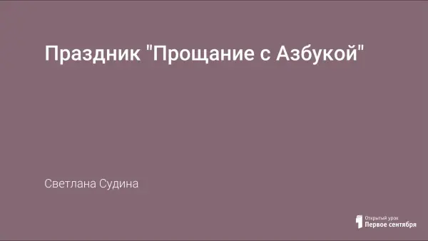 Праздник "Прощание с Азбукой" для младших школьников состоит из двух частей: стихотворный монтаж и КВН "33 родных сестрицы". На праздник также приглашаются родители, ученики 5-го класса - дети из предыдущего выпуска учителя.