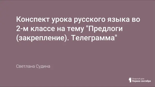 На уроке закрепляется правило о раздельном написании предлогов со словами, дети знакомятся с телеграммой как средством общения людей, с особенностями ее составления: из текста выбрасываются предлоги в целях экономии оплаты. Для закрепления умения составлять телеграммы в ход урока включено несколько речевых ситуаций, в частности эпизод из мультфильма "Зима в Простоквашино". Чтобы сделать памятку для составления телеграмм, используется интерактивная копировальная доска Panaboard.