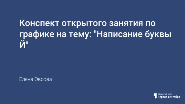 Открытое занятие проводится в подготовительной группе и является одним из занятий в разделе "Написание печатных букв" в курсе "Графика". Занятие состоит из трех частей: написание буквы Й (детям приходилось сравнивать изучаемую букву с ранее изученной буквой И и находить в них общее и различное, а также писать элементы печатных букв: вертикальные, наклонные и горизонтальные линии); графического диктанта (отрабатывалось умение ориентироваться на листе бумаги в клетку); упражнение на развитие воображения "Преврати линию в рисунок".