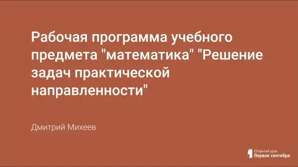 Представлена Рабочая программа учебного предмета "математика" по теме "Решение задач практической направленности".