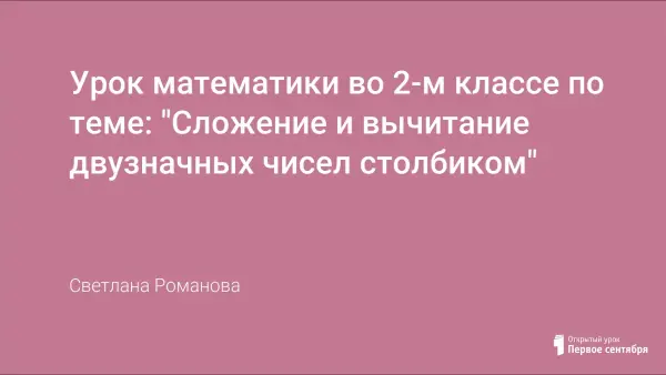 Предлагаемый конспект урока математики (автор учебника Аргинская И.) рекомендуется использовать в работе с учащимися 2-го класса (1–4), обучающимися по системе Л. Занкова. Данный урок знакомит учащихся с приемами сложения и вычитания двузначных чисел в столбик без перехода через разряд с использованием математических моделей.