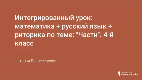 Интегрированный урок математики, русского языка и риторики в 4-м классе раскрывает связь наук на основе слова части. На уроке у учащихся формируется представление о взаимосвязях в окружающей действительности благодаря работе над развитием мышления с русским языком, риторикой.