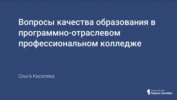 В работе отражаются теоретические вопросы качества образования в программно-отраслевом профессиональном колледже. Отмечается, что качество профессионального образования складывается, с одной стороны, из отдельных качеств обучающегося, а с другой стороны – является системой, предназначенной для решения конкретных профессиональных задач.