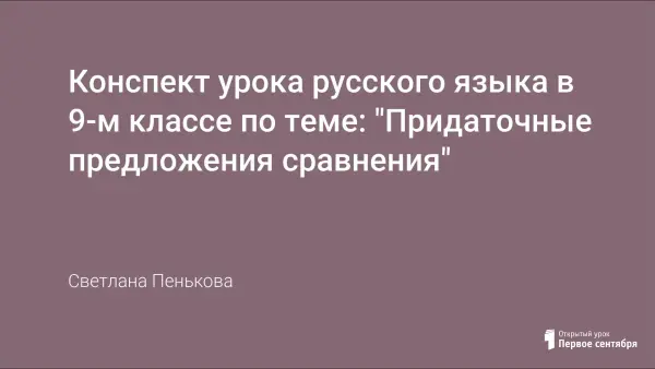 Учащиеся рассматривают СПП со значением сравнения, при этом делают самостоятельные выводы о сходстве и различии СПП сравнения и СПП образа действия. На уроке систематизируются знания о способах выражения сравнения как художественном изобразительном средстве, приводятся примеры из текстов. В ходе занятия ребята должны научиться отличать сравнительные придаточные, правильно ставить знаки препинания внутри СПП (в том числе при союзе как в ином значении).