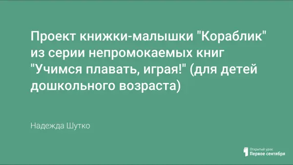 Цель проекта: знакомство детей со стихотворением Агнии Львовны Барто "Кораблик", закрепление полученных умений и навыков при обучении плаванию в бассейне в непринужденной игровой форме с помощью непромокаемой книжки-малышки.