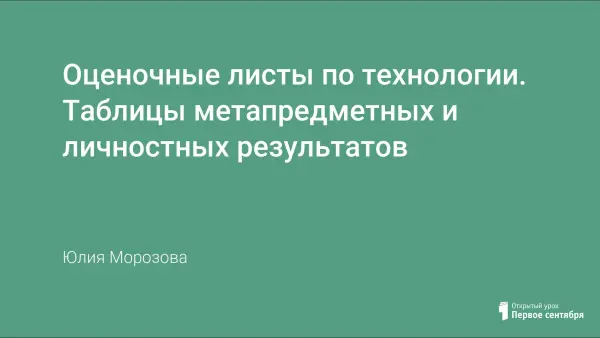 Представлены оценочные листы по технологии и таблицы метапредметных и личностных результатов.