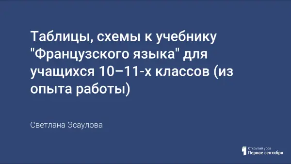В статье приводятся схемы и таблицы, разработанные учителем и используемые на уроках французского языка в 10—11-х классах к текстам по учебнику «Французского языка» Григорьевой Е.Я.