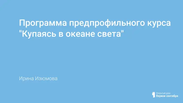 Данная программа предпрофильного курса имеет своей целью обеспечить возможность предпрофильной подготовки выпускников основной школы. В программе курса затронуто много интересных вопросов, связанных с проявлением различных световых явлений в природе, которые остаются за пределами школьных учебников: исторические аспекты развития оптики, использование знаний о природе света в технических устройствах, особенности восприятия света живыми организмами, механизм зрения человека, способы сохранения здорового зрения.
