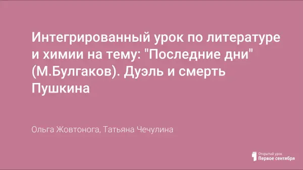 Интегрированный урок по литературе и химии на тему: "Последние дни" (М.Булгаков). Дуэль и смерть Пушкина