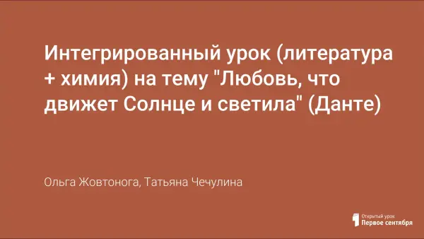 Интегрированный урок (литература + химия) на тему "Любовь, что движет Солнце и светила" (Данте)