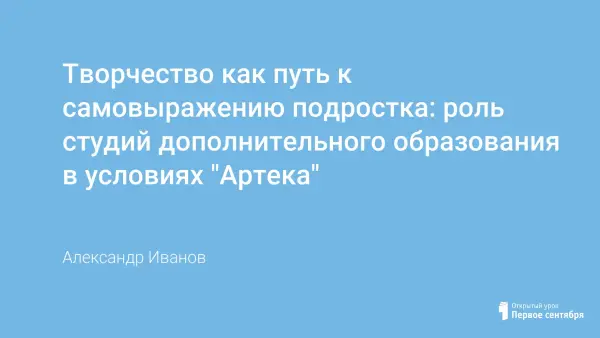 В статье раскрыта роль студий дополнительного образования в самовыражении подростков; обозначено, что важным аспектом творческой деятельности в «Артеке» является поддержка индивидуальных особенностей каждого подростка через возможность выбора направления, соответствующего их интересам и способностям, что позволяет максимально раскрыть их потенциал.