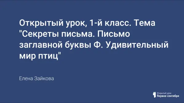 На уроке дети учатся писать заглавную букву Ф, слоги и слова с этой буквы, закрепляют умение писать на слух основные элементы письма, расширяют боковое зрение, навыки правильного каллиграфического письма и графическую зоркость.
