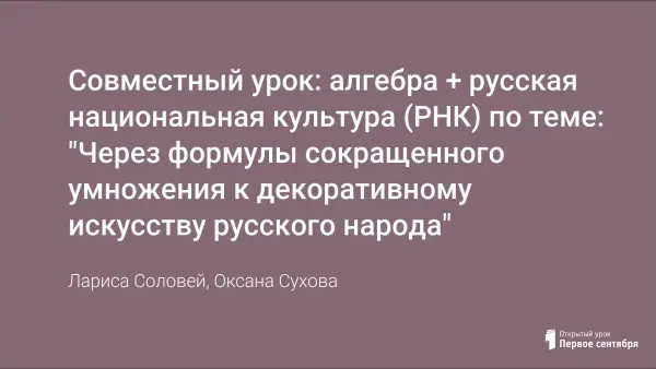 Совместный урок: алгебра + русская национальная культура (РНК) по теме: "Через формулы сокращенного умножения к декоративному искусству русского народа"