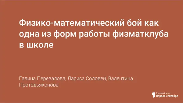 В статье рассматривается одна из форм внеклассной работы по математике и физике в средней общеобразовательной школе. Описывается физмат-бой, проводящийся в рамках работы физико-математического клуба школы, приводятся его правила и примеры задач.