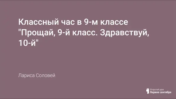 В выпускных классах проводятся последние звонки, последние уроки, последние классные часы. Предлагаю классный час, который проводится по окончани 9-го класса перед предстоящей аттестацией. Его цель – снять предэкзаменационную напряженность, создать праздничное настроение, помочь почувствовать себя нужными, любимыми, неповторимыми.
