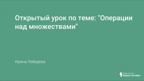 Образовательной целью урока является формирование: умений выделять множества, подмножества и их элементы; навыков находить область пересечения и объединения множеств. На уроке учениками прослушивается медиалекция по данной теме, затем выполняются задания программы "Мир информатики" и решаются у доски задания из рабочей тетради. В конце урока работа на тренажере для закрепления навыков пользования компьютерной мышью.