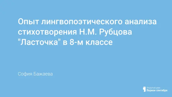 Отказываясь от традиционных уроков при изучении русского языка, я ввела в восьмом классе лингвопоэтический анализ стихотворения Н.М. Рубцова "Ласточка". Поскольку класс многонациональный, слова, требующие толкования, давались на родном языке каждого ученика (русский, башкирский, татарский, армянский). Это, конечно, вызвало интерес. Выполнение домашнего задания подтвердило правильность моего выбора метода лингвистического анализа текста: стихотворение "Воробей" проанализировали великолепно.
