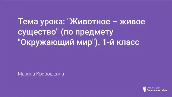 Цели урока: формирование понятия "Животное - живое существо"; расширение знаний детей: о питании животных, способах их передвижения, строительстве нор и гнезд, заботе о потомстве; систематизирование знаний о группах животных (насекомые, рыбы, земноводные, пресмыкающиеся, птицы, звери), важнейших отличительных признаках указанных групп; развитие простейших навыков самостоятельной работы при работе с дополнительной литературой; воспитание бережного отношения к природе.