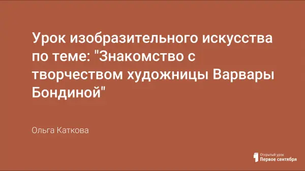 Данная разработка представляет собой урок по изобразительному искусству, который знакомит учащихся с биографией и творчеством художницы Варвары Бондиной. В работе сравнивается творчество Варвары Бондиной с русским лубком.