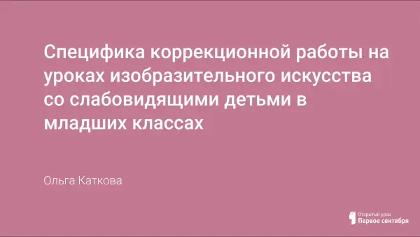Статья раскрывает специфику коррекционной работы на уроках изобразительного искусства со слабовидящими детьми в младших классах; работа ведется в двух направлениях: развитие познавательной сферы и развитие мелкой моторики.